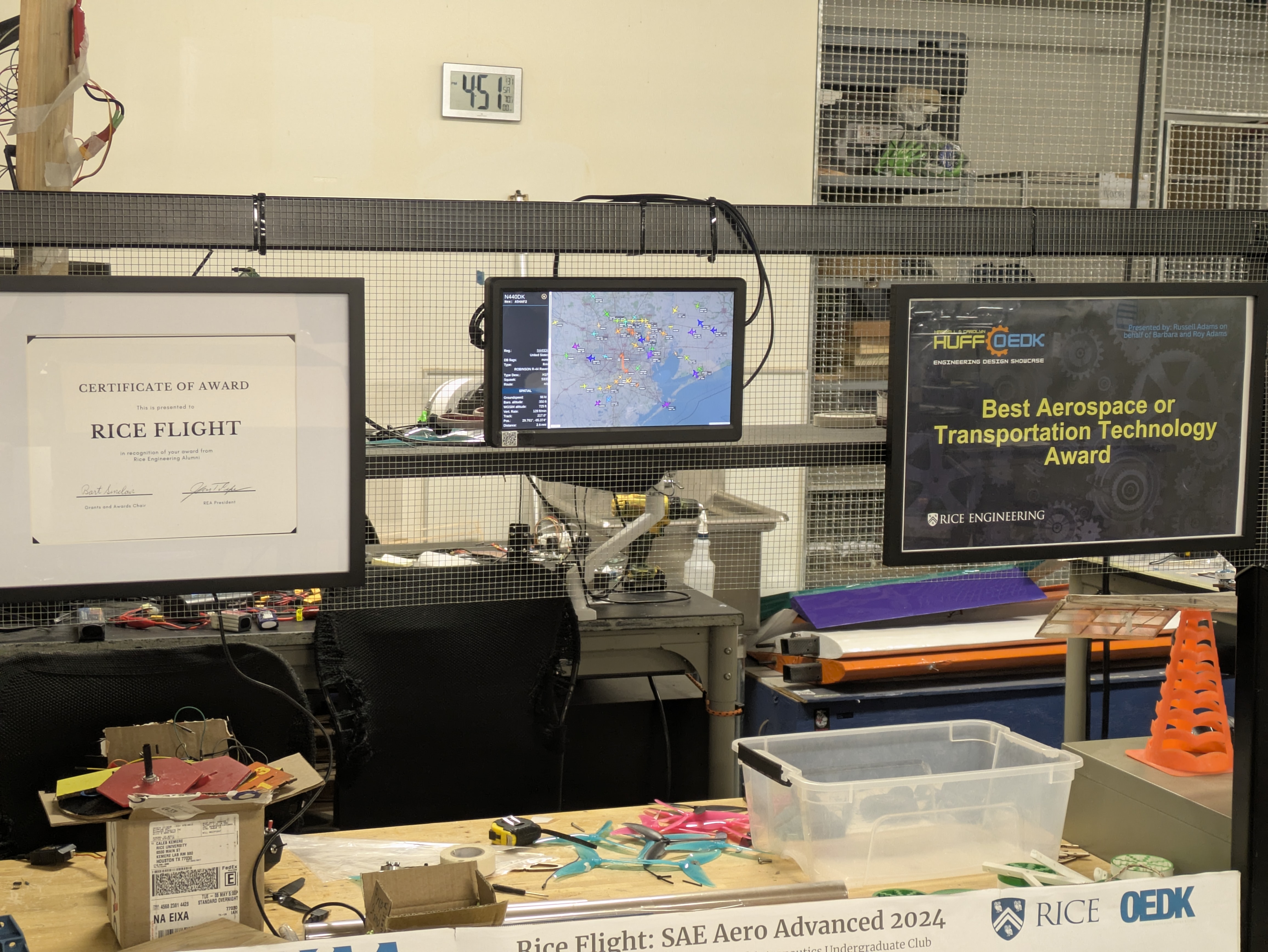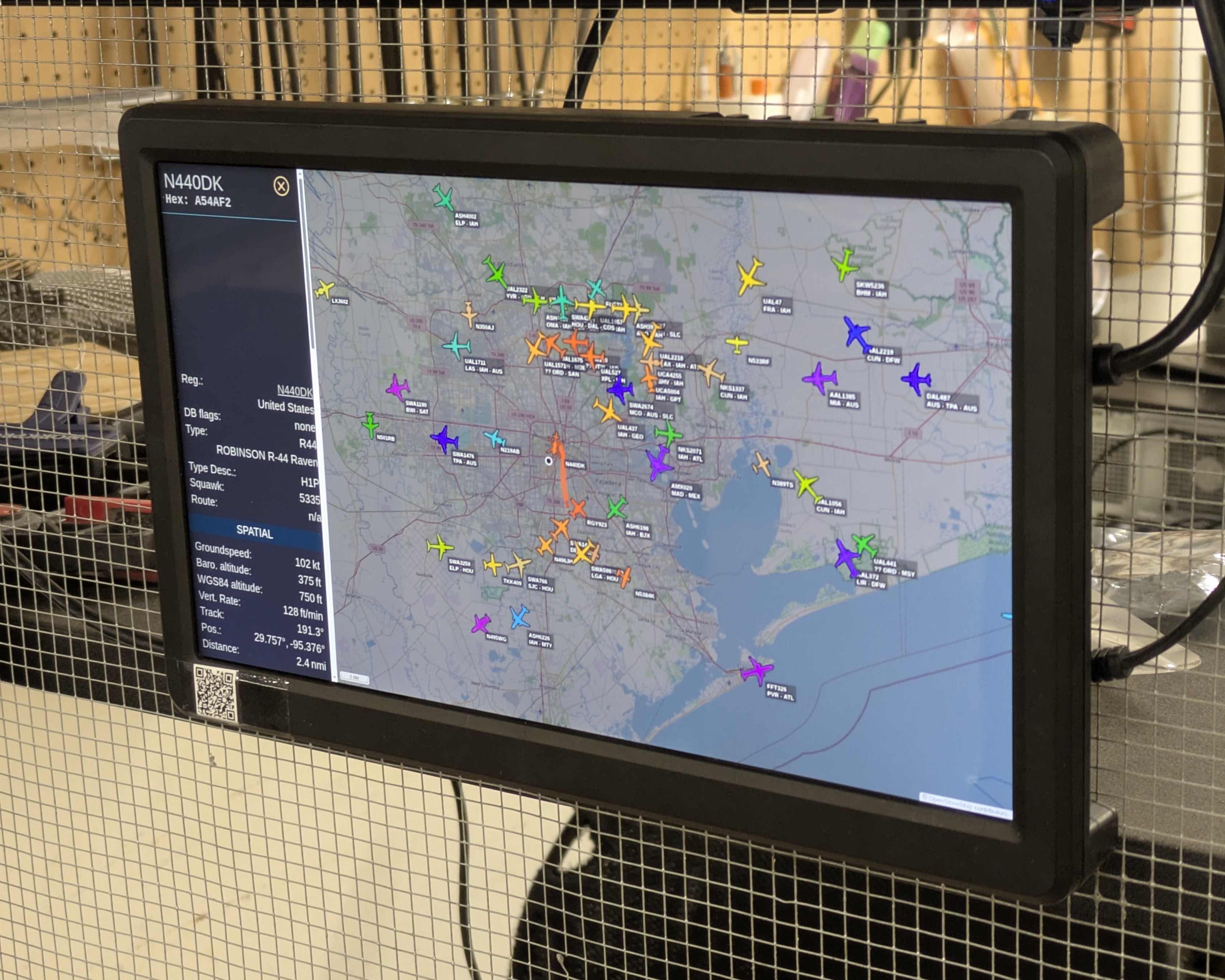 I recently found a 10.5” 1080p monitor for free in Rice’s OEDK. I’ve been looking for a project to use it in, and this was the perfect chance. I hooked up a Raspberry Pi 4 running Chromium in Kiosk Mode, wrote a few autostart scripts, and now the student club Rice Flight has a live view of nearby aircraft! The system restarts every night and reloads the website every three hours. It also auto-selects the nearest aircraft and displays a picture of it if available.
