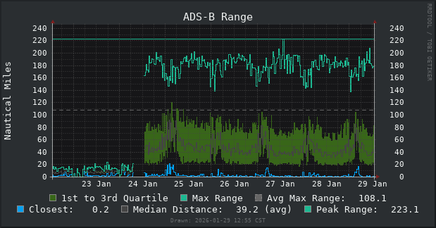Range has also clearly skyrocketed, and I’ve been able to occasionally see aircraft past Austin!