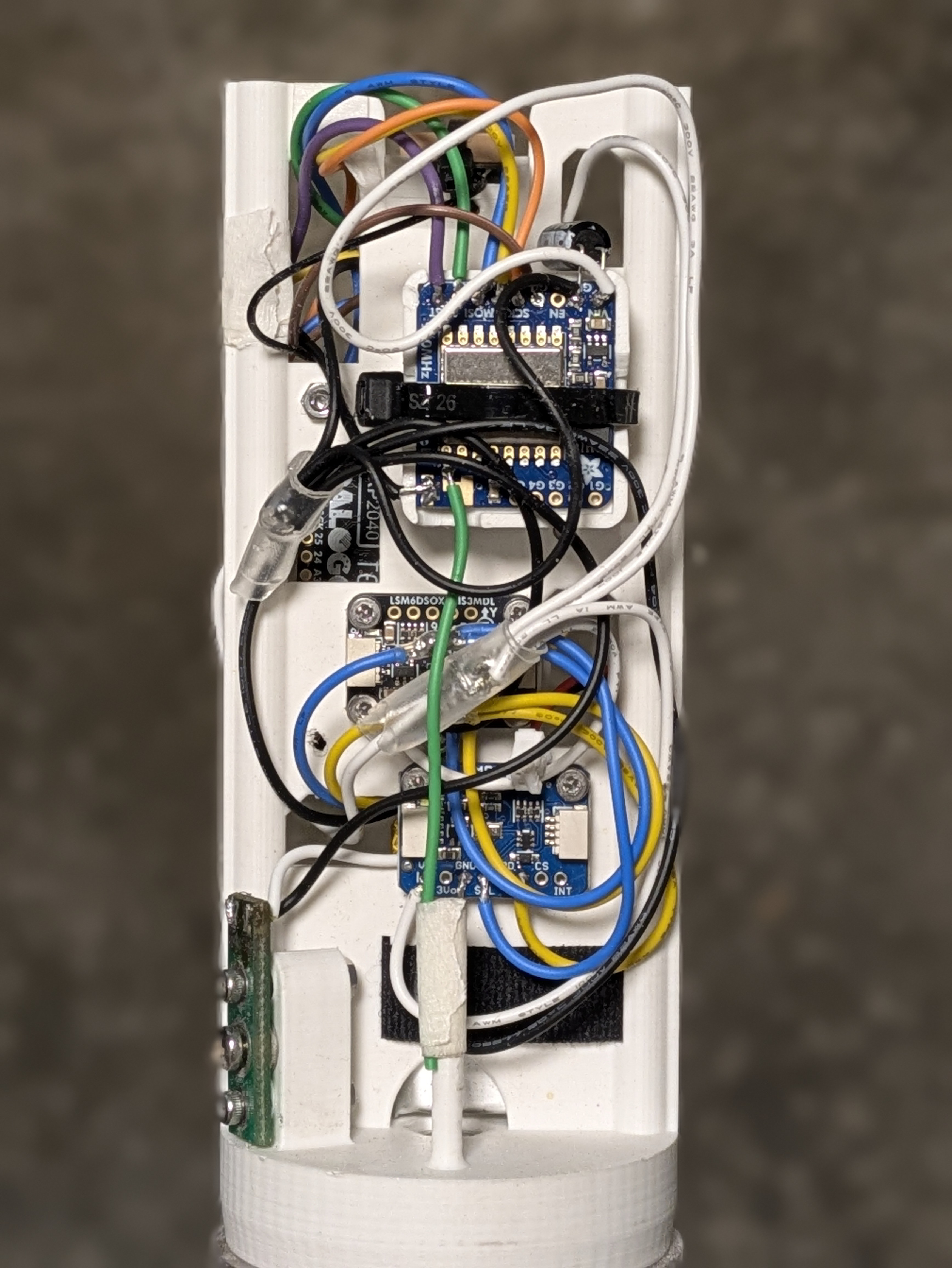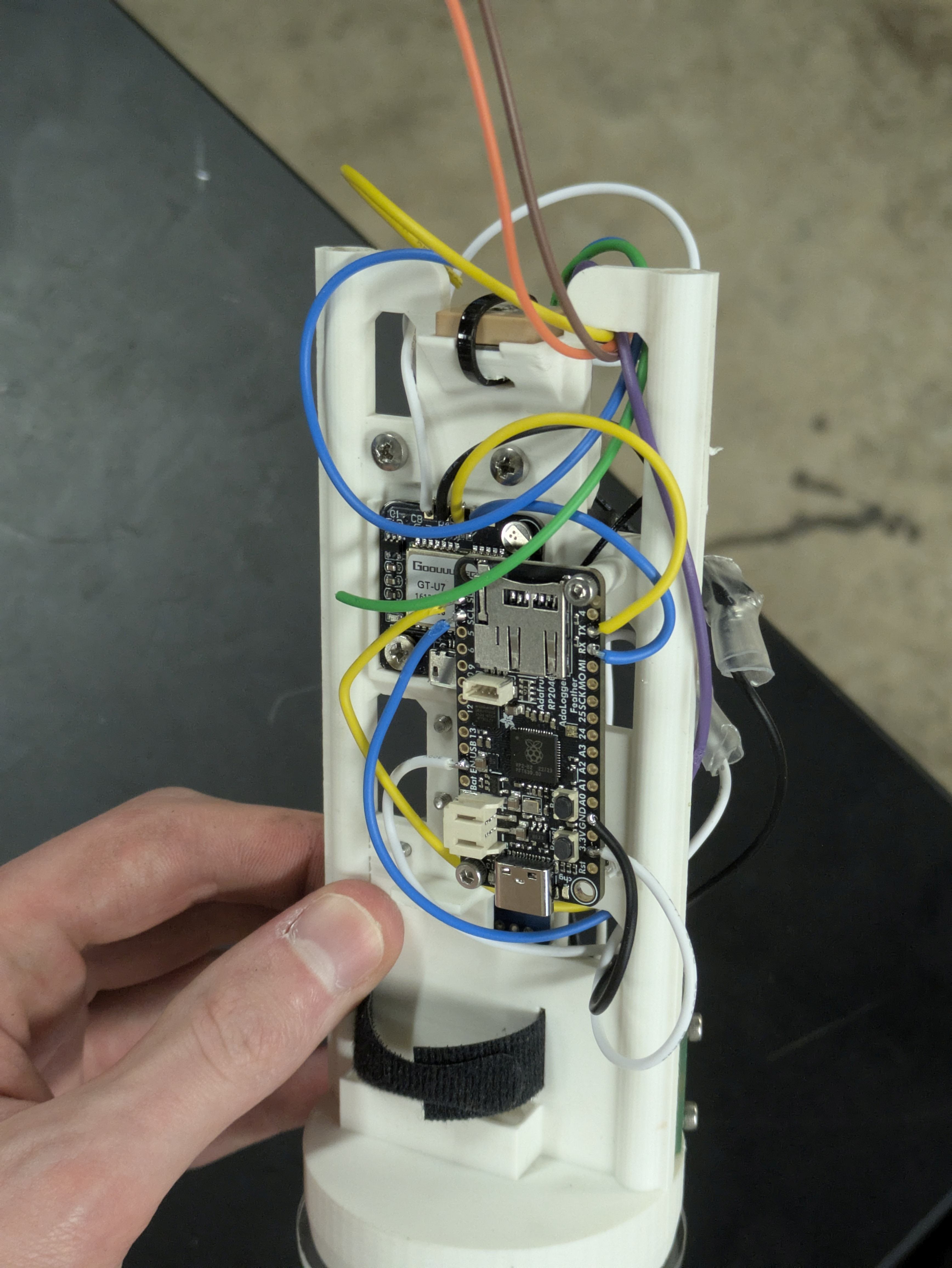 Choosing a microcontroller was the biggest decision. The Adafruit Feather line is a modular system with easy expansion. I chose the RP2040 version for its low power consumption and the reliability of the built-in SPI uSD card slot. - Adafruit BMP390