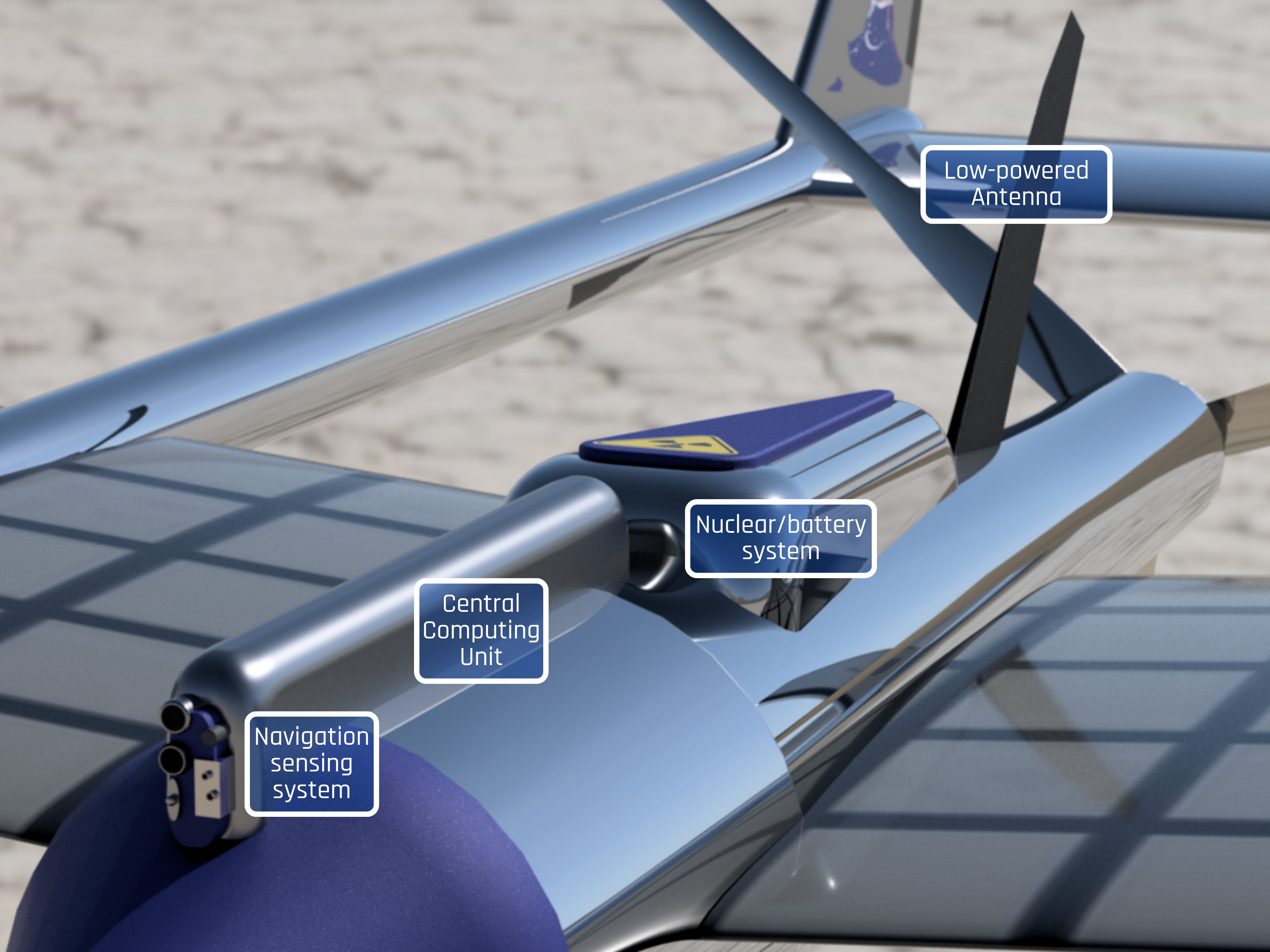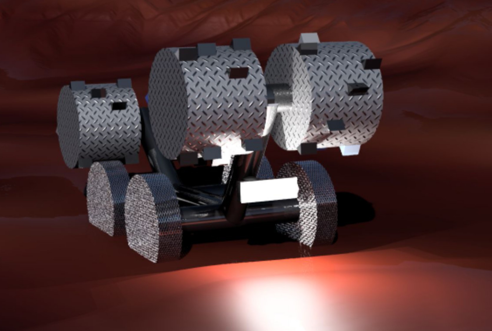- Power System: Integrated high-capacity batteries with a plutonium-based (nuclear) charging system for continuous operation during dust storms.